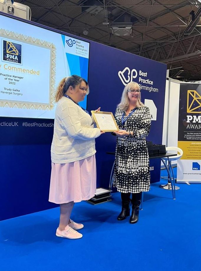 Havergal Surgery's own Trudy (Practice Manager), John (Operations) and the Reception team all have been awarded HIGHLY COMMENDED which was presented at the Best Practice Birmingham in October 2023.